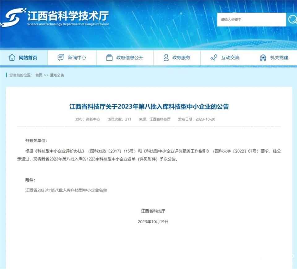 10月19日,江西省科學技術廳發布了《江西省2023年第八批擬入庫科技型中小企業名單公告》,高安市歐大師家居科技有限公司成功入庫科技型中小企業!這意味著我司在科學技術研究、自主知識產權等方面的技術服務獲得官方認可!