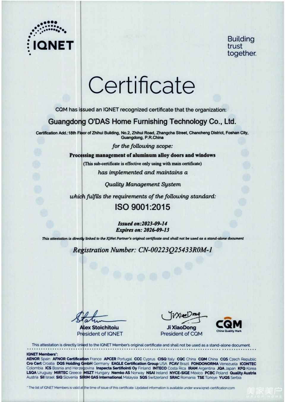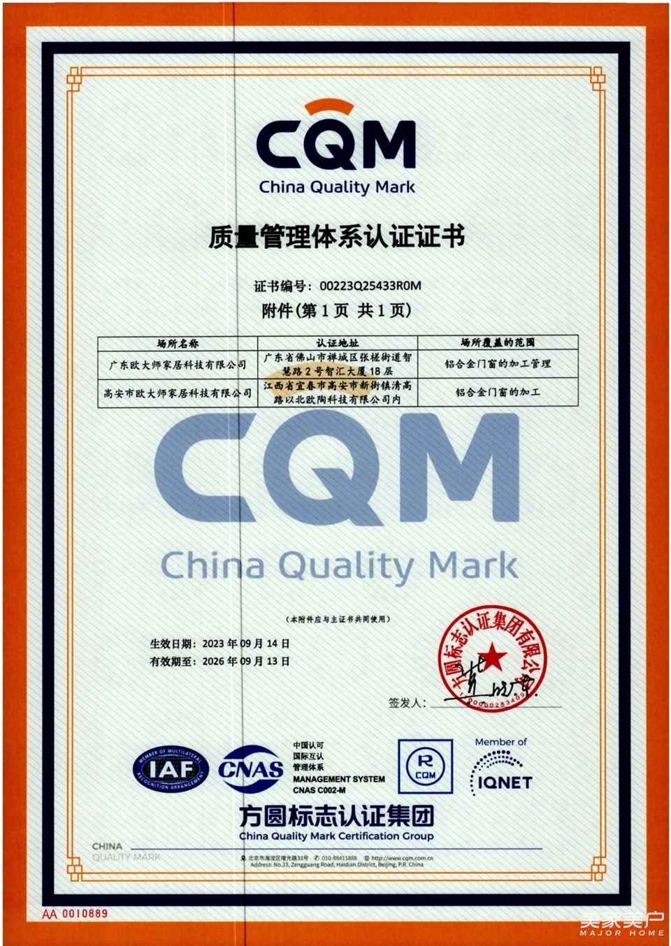 歐大師隔熱門窗自創立之初便引進工業4.0智造系統,結合完整細致的工序流程,引領門窗行業向專精特新發展。此次成功入庫科技型中小企業以及榮獲 ISO三大管理體系認證證書,既照亮了歐大師隔熱門窗未來前進的道路,也鞭策歐大師隔熱門窗繼續秉持著“守護生活溫度,貢獻低碳世界”的使命。