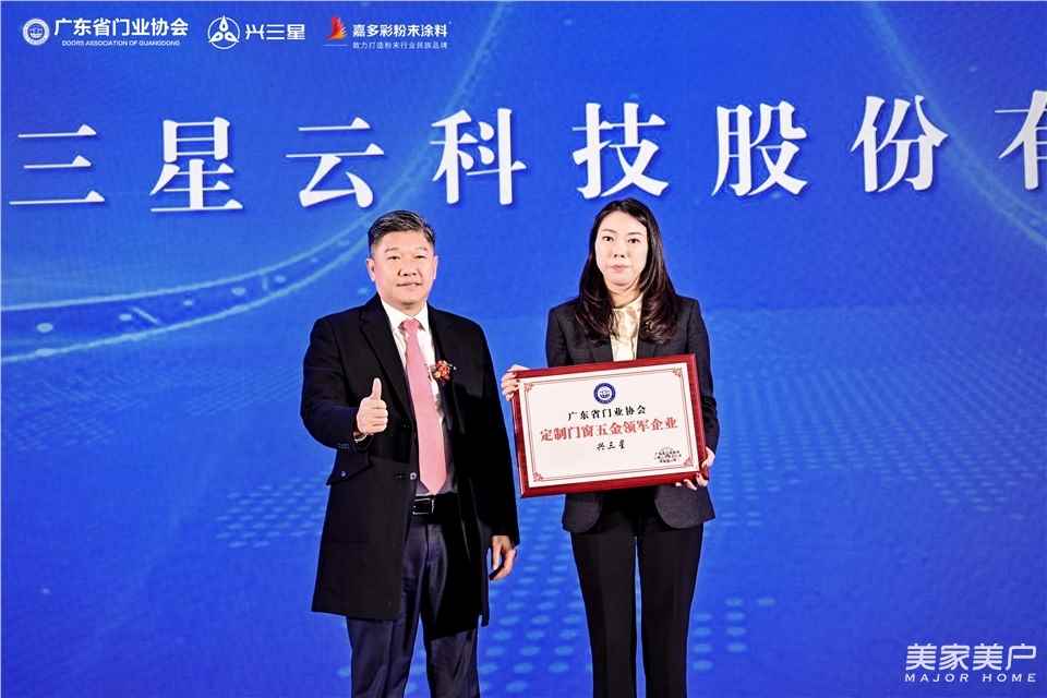 榮獲“定制門窗五金領(lǐng)軍企業(yè)”榮譽(yù)(興三星云科技常務(wù)副總裁陳瑋琦上臺領(lǐng)獎)