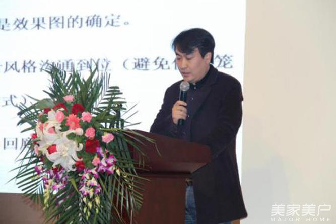 隨后,由北京鼎漢展覽展示有限公司總經理劉建軍結合多年來專業提供展臺設計及搭建的豐富經驗,根據2017北京定制家居/門業展的實際情況,從如何有效的把控好布展時間及布展的前期準備、如何遵守展館的安全規定、如何選擇一家合適的搭建服務商三個方面做了分享,讓參會企業對明年布展的籌備工作心里有底。