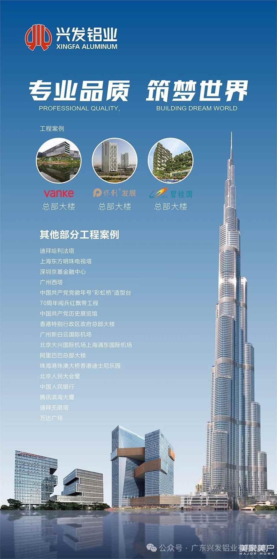 興發鋁業作為鋁型材行業的龍頭企業,專業專注鋁型材的生產制造銷售已有40載,目前在中國擁有七大生產基地,國外澳洲基地正在建設中,越南基地正在規劃,提供覆蓋鋁合金各大領域的60多萬種產品規格型號滿足市場客戶需求。多年來精耕細作積極推進提質增效,順應數智化發展趨勢,通過云計算、大數據、智慧物流、流程再造等新技術,打造數字化工廠,在研發設計、訂單管理、生產制造、物流配送、產供銷協同上達到全局的數字化和智能化,并嚴苛執行綠色標準,大力推進綠色產業生產線的投入與更新,以技術改造、創新驅動夯實客戶發展基礎,持續與各地客戶、知名房地產公司保持著緊密合作關系,賦能建筑價值,打造了無數經典地標項目,蟬聯三屆被評為“中國建筑鋁型材二十強企業第一名”,產品在高端鋁合金擠壓材市場保持著較高的市場占有率。