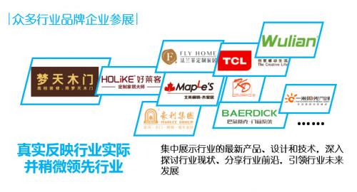每年的建博會,大約會有2400多家企業參展,好萊客、頂固、夢天、豪利、友邦、美爾凱特、巴爾蒂克、新木緣、派雅、皇派、TCL、南京物聯、晾霸、好易點、百年泥匠、藍天豚……這些知名企業,都會參展。產品涵蓋定制家居、廚房、天花吊頂、門窗、木門、五金、遮體裝飾等,主要題材幾乎囊括所在行業全部主流品牌。