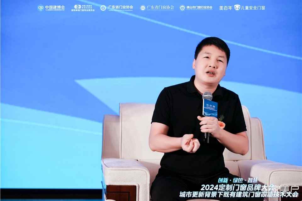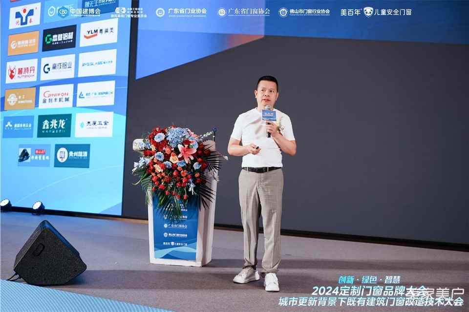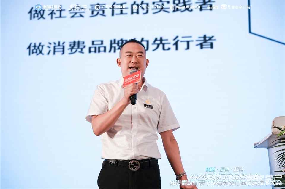 作為本場晚宴的總冠名單位,佛山市門窗行業協會門窗公益專委會理事長、美百年門窗家居總經理、門窗創二代、抖音博主賴錦良為大會致辭。他表示,“進入門窗行業11年,經過深入思考之后,決定要把門窗做得跟別人不一樣,美百年定位兒童安全門窗,我們要做的就是門窗界的沃爾沃。”