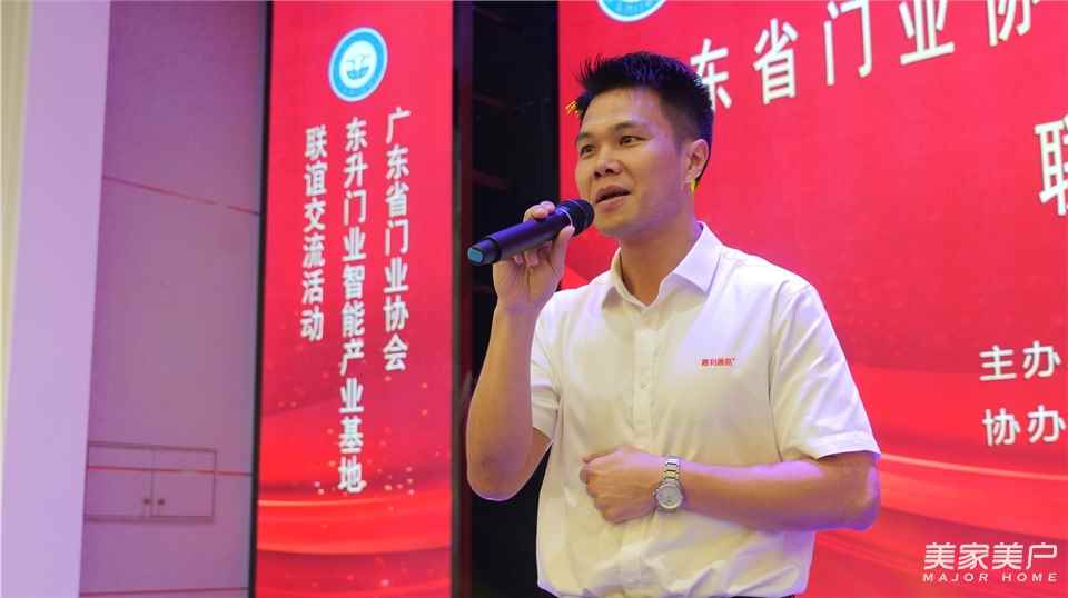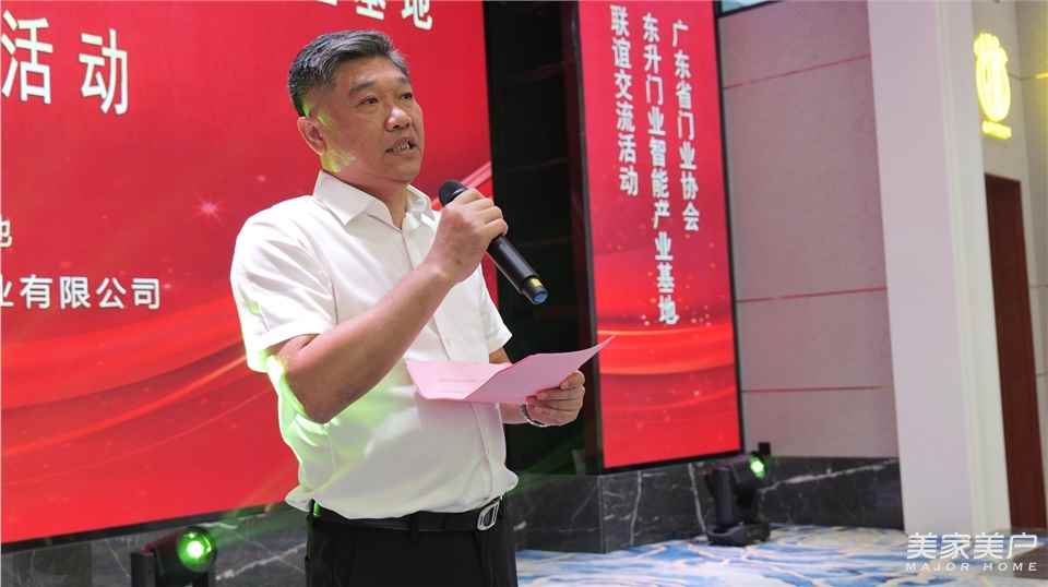 廣東省門(mén)業(yè)協(xié)會(huì)生態(tài)門(mén)專委會(huì)會(huì)長(zhǎng)、掌門(mén)人董事長(zhǎng)廖健升在座談會(huì)上致辭