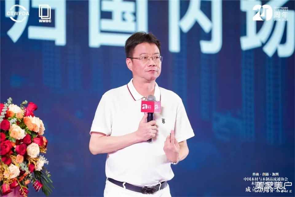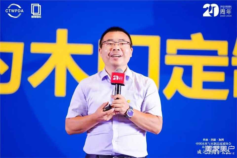 中國木材與木制品流通協會會長李佳峰在致辭中總結了木門行業過去20年的發展成果,目前,企業數量達1萬家,年產值從170億元增長至1600億元,在品牌、技術和規模方面取得了顯著成就。他表示,盡管當前形勢充滿挑戰,但信心重于一切,協會將繼續服務好企業,與全體木業同仁一道,推動行業高質量發展。