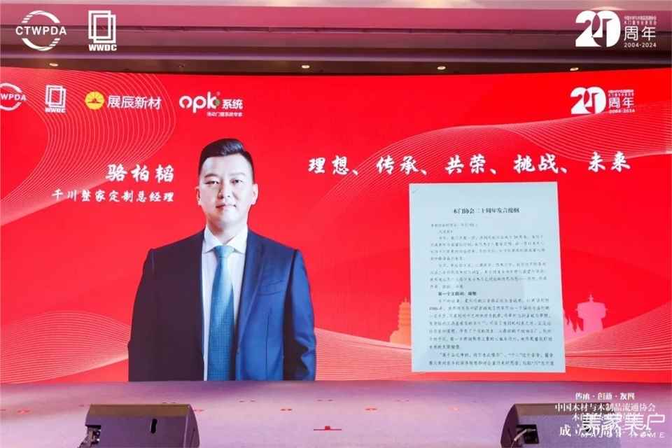 崢嶸奮進二十載,共譜木門新未來。二十年來,中國木門行業成績斐然,實現了跨越式發展。2024年中國木材與木制品流通協會木門窗專業委員會成立20周年大會的成功舉辦,彰顯了中國木門行業的輝煌成就,同時將傳承的概念貫穿全程,極大地提振了行業同仁的信心,開啟了屬于中國門業人的新篇章。