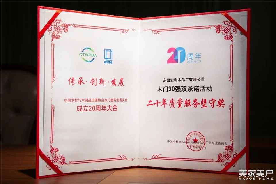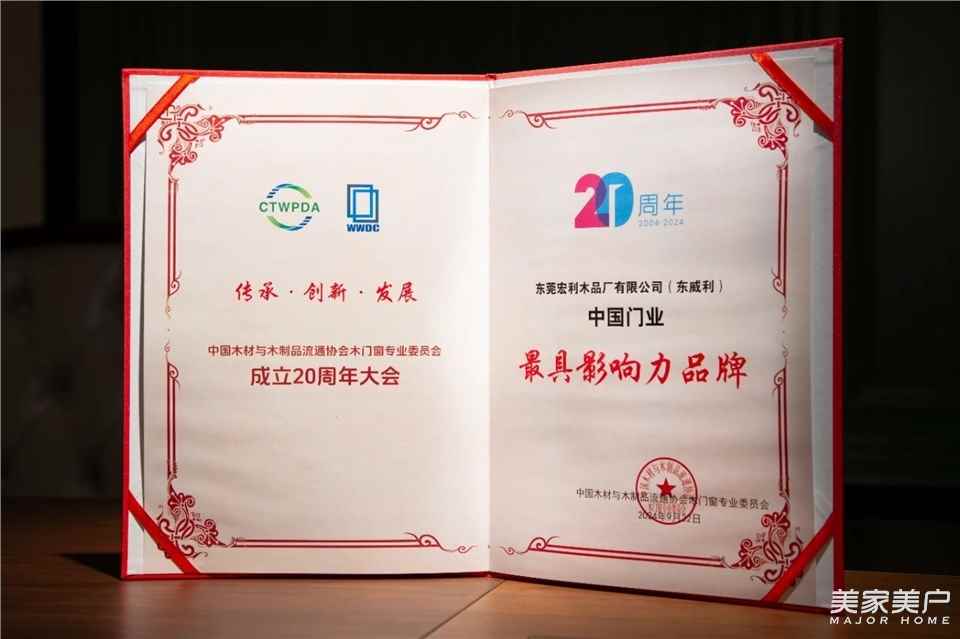 在此次中國木材與木制品流通協會木門窗專業委員會成立20周年大會中東威利榮獲中國門業時代功勛、最具影響力品牌、二十年質量服務堅守獎、中國門業大國工匠獎項。