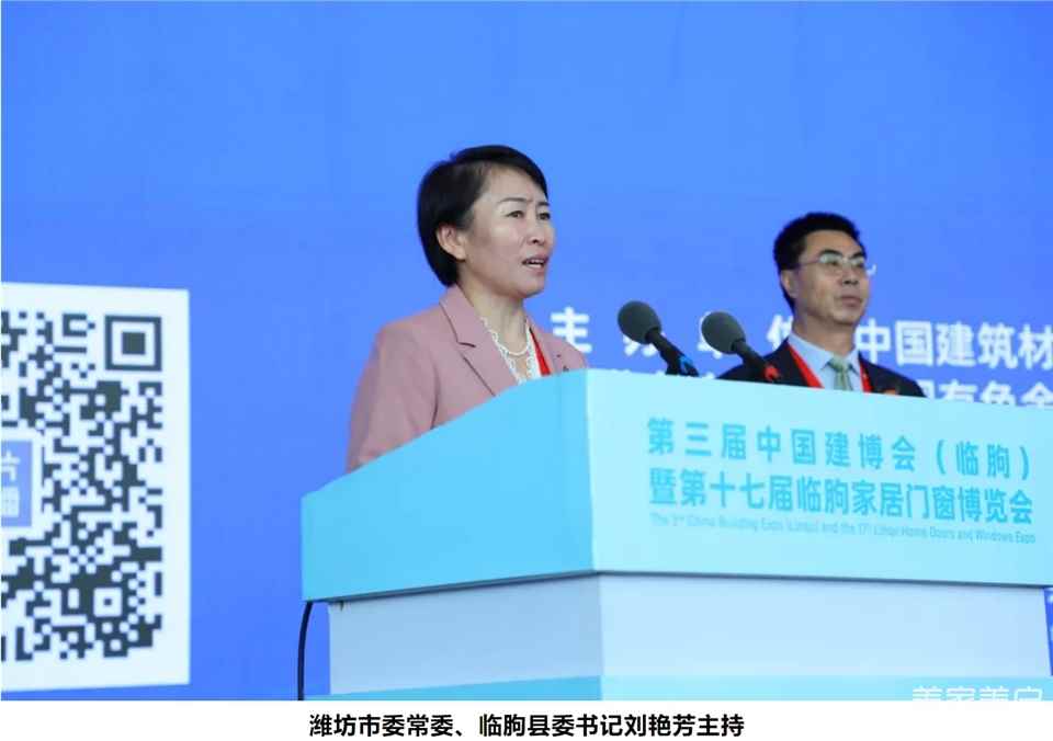 開幕式由濰坊市委常委、臨朐縣委書記劉艷芳主持,濰坊市副市長馬勇、中國建筑材料流通協(xié)會會長秦占學(xué)分別致辭。