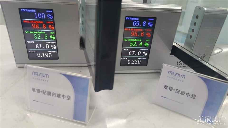 王浩杰介紹:“控溫功能膜已完全填補(bǔ)了傳統(tǒng)門窗用玻璃的不足之處,不僅能夠?qū)⒉AУ目癸L(fēng)性能提高4倍,還能夠提升門窗玻璃阻隔紅外線、紫外線性能,對紅外線的阻隔率達(dá)到95%,對紫外線的阻隔率達(dá)到100%,優(yōu)越于傳統(tǒng)Low-E玻璃的指標(biāo)性能。”可以說,控溫功能膜將改變以往玻璃的功用。
