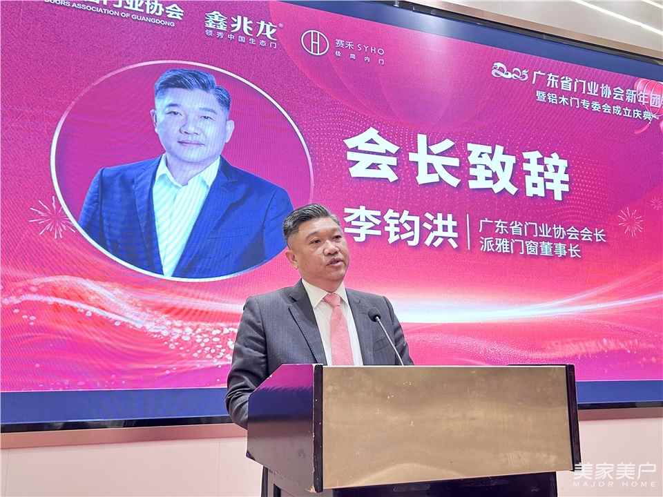 在當(dāng)晚舉行的團(tuán)拜會晚宴上,廣東省門業(yè)協(xié)會會長、派雅門窗董事長李鈞洪為晚宴致辭時強調(diào),“2024年,在行業(yè)加速洗牌與升級變革中,廣東門窗行業(yè)走過了極為艱難的一年。但放眼未來,門窗行業(yè)仍是家居建材的藍(lán)海市場,潛力依然很大。實干闖未來,實力決定未來,金杯銀杯不如行業(yè)的口碑,讓我們滿懷激情迎接新的一年的到來。”