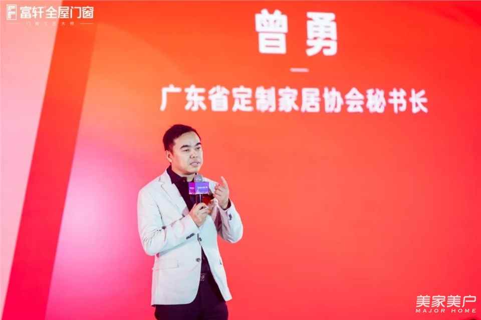 晚宴在流光溢彩的鎂光燈下盛大開啟,富軒集團董事長李昌安先生、廣東省定制家居協會秘書長曾勇先生、廣東省門業協會執行會長徐生先生、廣東省門窗協會秘書長管琪林先生在晚宴上進行致辭,拉開了晚宴的序幕。