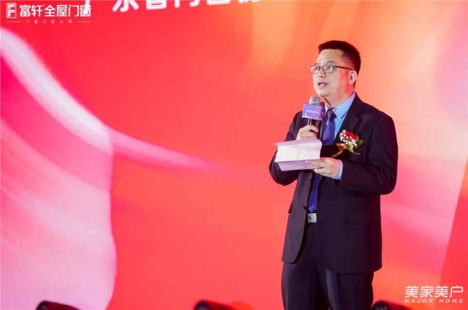 中國建筑材料流通協會執委副會長李作奇先生發表致辭,在困難重重的2024年,富軒依然保持逆勢增長,這在整個家居建材行業都是一面鼓舞人心的旗幟。