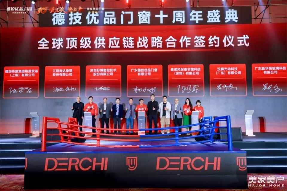 緊隨其后的全球頂級供應鏈戰略合作簽約儀式,德技優品門窗與江陰海達、德國格屋、深圳好博、新華強玻璃、漢獅光動科技、吉茂鋁業、泰諾風、希美克、高登鋁業、硅寶科技等供應鏈單位達成深度戰略合作,蓄力譜寫新時代發展藍圖。這一舉措不僅強化了品牌在高端系統門窗領域的技術壁壘,更標志著其從“中國制造”向“全球資源整合者”的轉型。