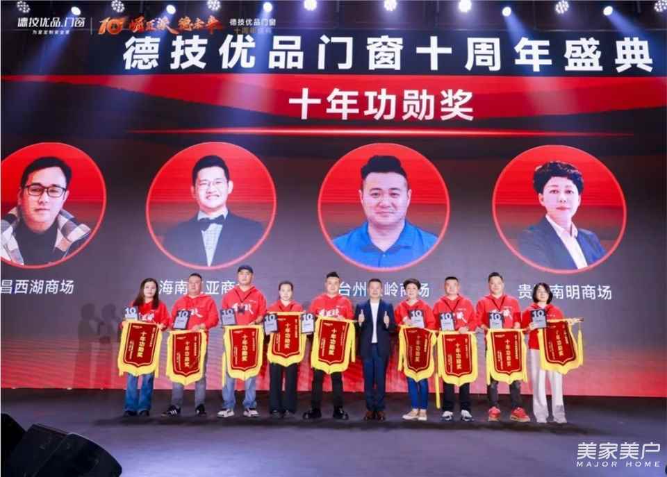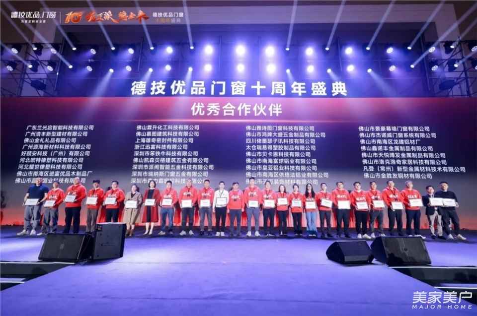一個企業從覺醒到崛起,從0到1的持續突破,始終離不開一直以來并肩前行,一路支持與信任的伙伴們。德技優品為全球優秀經銷商、供應商伙伴、媒體嘉賓頒發榮譽獎項。感謝十年來的相守,期望下一個新十年征程,繼續攜手德技優品門窗,闊步開拓更壯大的未來。