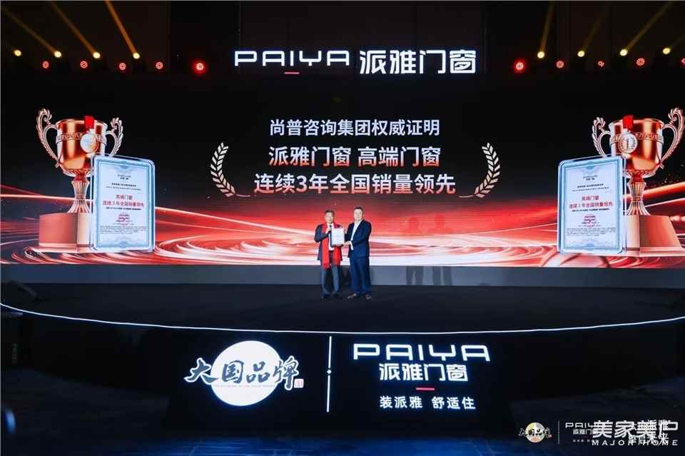 會議現場,尚普咨詢集團秉承公正、客觀、真實的調研原則,基于對派雅門窗品牌力、技術力、產品力以及線上線下銷售市場等多維度的客觀分析,授予派雅門窗“高端門窗連續3年全國銷量領先”的市場地位證明,派雅再次憑借硬核實力印證行業領軍者地位。