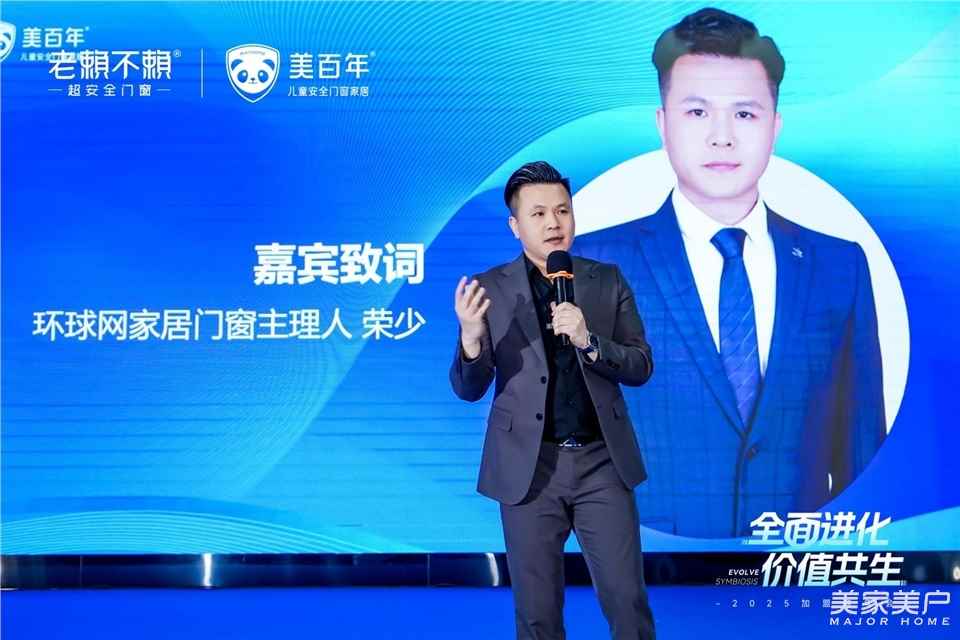 美百年兒童安全門窗家居總經理賴錦良詳細分享公司的“門窗家居”產品體系,介紹2025新品,包括5腔體結構、三道密封性能、升級隔熱條等更適合中國兒童家庭的門窗家居場景解決方案,安全又實用。并分享公司攜手“鴻蒙生態”在廈門打造首家智能門窗 智聯生活場景體驗館。