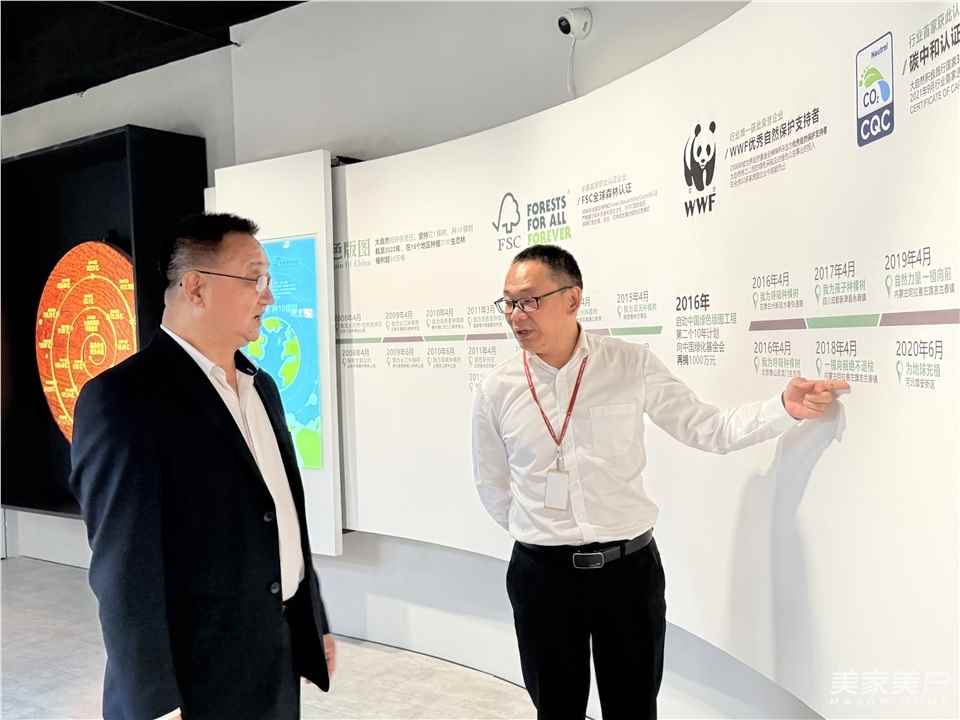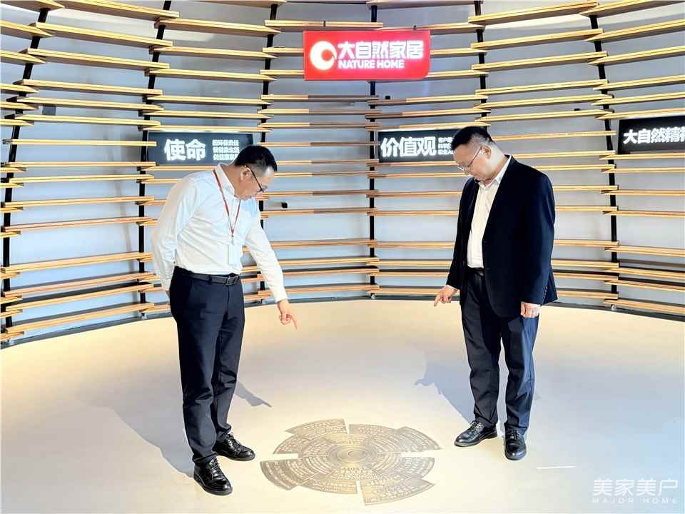 在大自然總裁辦主任王世榮的陪同下,徐生會長一行參觀了大自然家居文化館和展廳。在大自然家居文化館,通過豐富的圖文資料與實物展示,全面了解了大自然家居自1995年創立以來的發展歷程、企業文化以及社會責任,親身感受大自然家居的多元化產品矩陣。