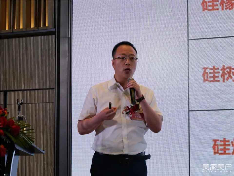 硅寶科技集團副總經理李國利作硅寶集團介紹。他講到“技術創(chuàng)新”是硅寶科技的核心競爭優(yōu)勢,并從技術、規(guī)模、平臺、品牌、檢驗、人才、認證7個維度講述了硅寶當之無愧為中國有機硅密封膠的“第一品牌”。