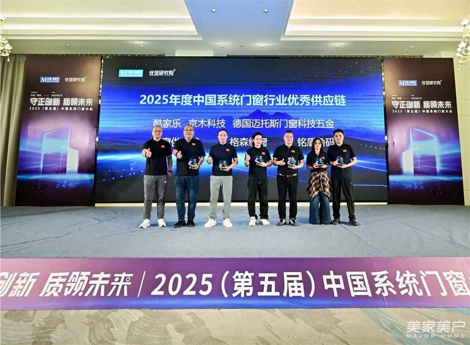 邁托斯門窗科技五金獲“2025年度中國系統門窗行業優秀供應鏈”殊榮