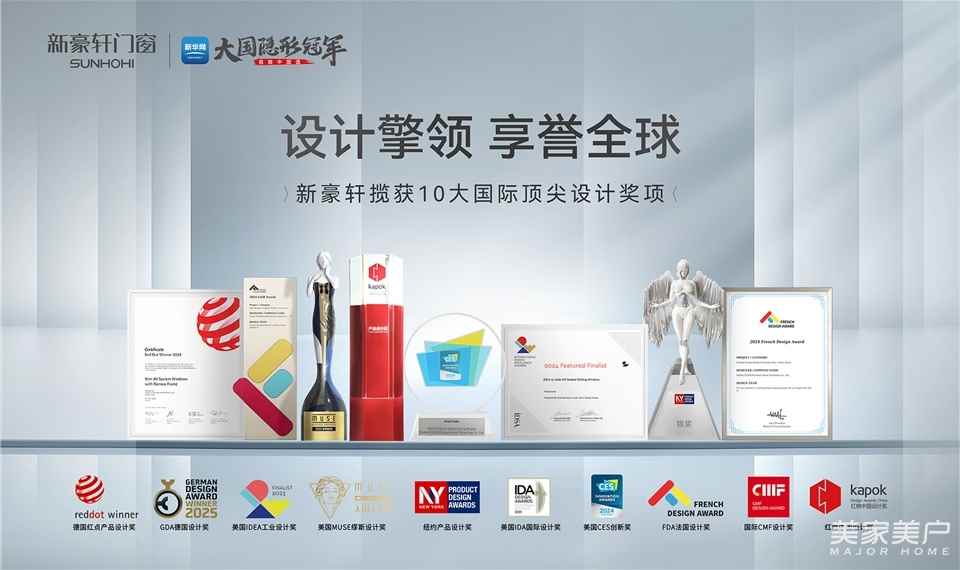 事實上,新豪軒門窗不僅是門窗行業唯一企業入選新華網 “極致中國造?大國隱形冠軍”的品牌,還是行業內首家且唯一獲得德國紅點產品獎、紐約設計獎等十大國內外頂尖設計獎項的企業。新豪軒門窗對品牌影響力的打造,也為中國門窗產品走向世界奠定堅實基礎。