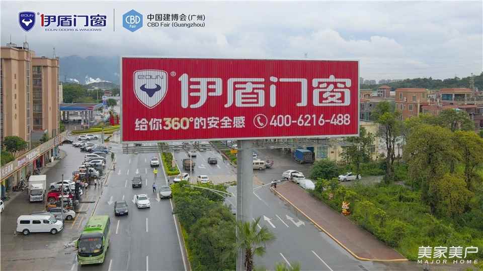 廣州建博會期間,伊盾門窗更斥巨資在廣交會展館、廣州南站、多個高速樞紐投放廣告,多點位同頻上新,伊盾品牌硬核實力強勢出圈。