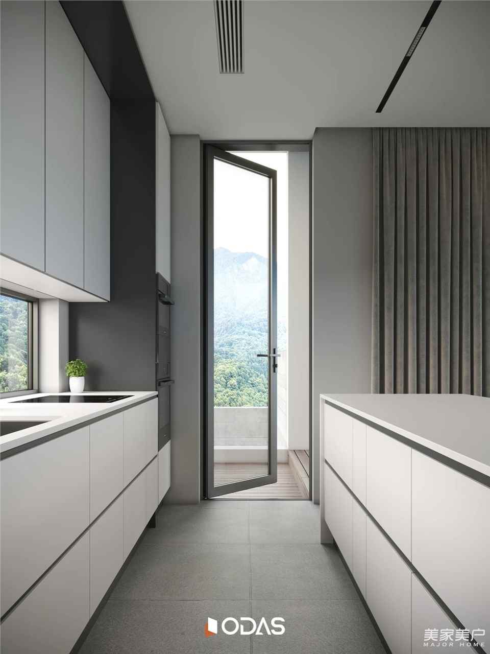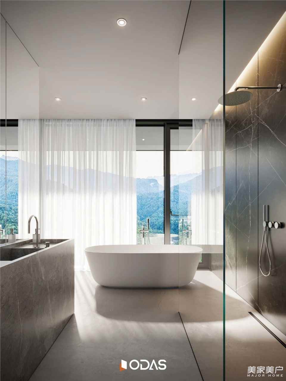 ☆門窗選型與空間功能協同整合,功能導向的門窗選擇。根據別墅各個空間的不同功能特點,選擇與之相適應的門窗類型和產品。如全景區域需要視野開闊、承重能力強的門窗,因此選用歐大師攬勝138全景推拉門;廚房側門注重通風、采光以及安全耐候,則匹配歐大師攬光85外平開門。通過這種功能導向的門窗選型方式,使門窗成為空間功能的有機組成部分,提升整體空間的使用價值。