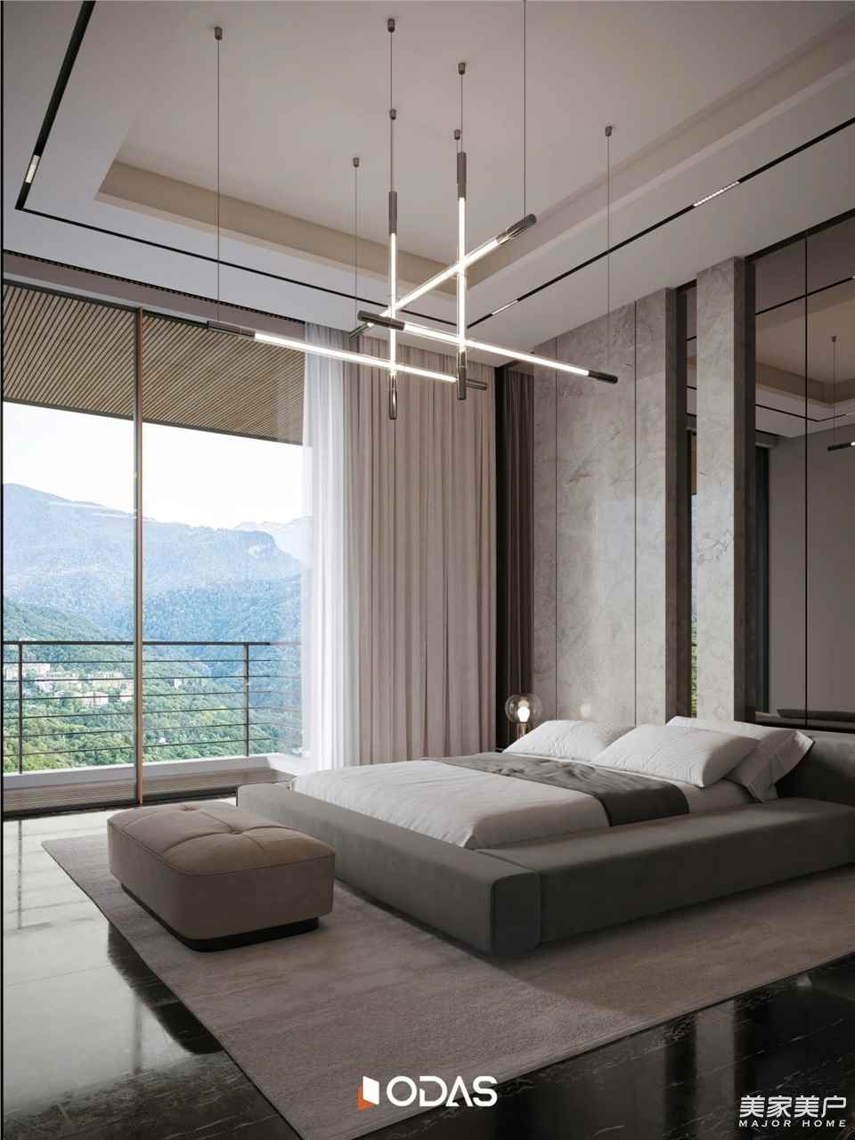 超纖勾企可視面僅16mm,滿足全景通風采光需求;高承重鋼制滑輪組,針對不同尺寸和重量的扇匹配應用,單扇最高重量可達1000KG;其超大面積的落地玻璃窗設計,使得臥室與戶外庭院之間的界限變得模糊,空間視野因此被無限放大,彰顯出一種豁達而高雅的氣度。