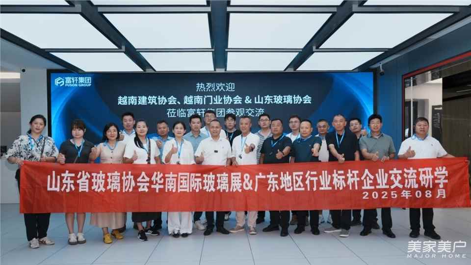 8月23日,廣東省門業協會攜手越南門業協會、越南建筑協會、山東省玻璃協會以及河北陶瓷玻璃行業協會相關負責人一行赴富軒集團進行深度考察交流,受到富軒集團董事長李昌安的熱情接待。此次活動旨在促進國內外行業資源對接、技術共享與市場合作,推動產業鏈協同發展。