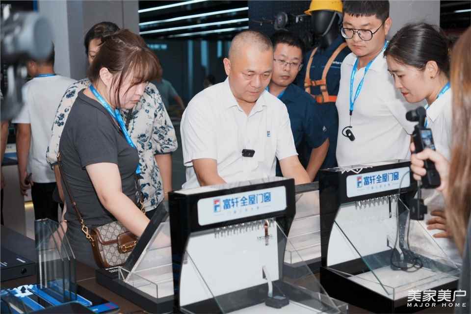 在富軒集團董事長李昌安的親自帶領下,考察團首先參觀了集團現代化展廳。展廳內展示了富軒集團在門窗、玻璃及建筑配套領域的創新產品與核心技術,包括智能門窗系統、節能玻璃解決方案及高端定制門窗產品。代表團對富軒集團的產品工藝、研發能力和智能制造水平給予了高度評價。