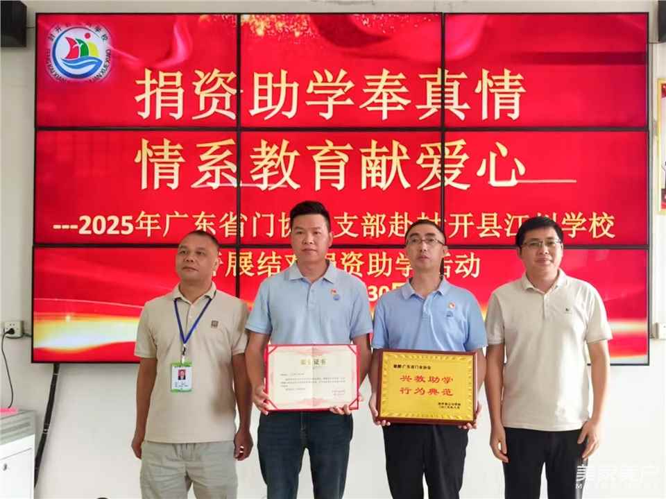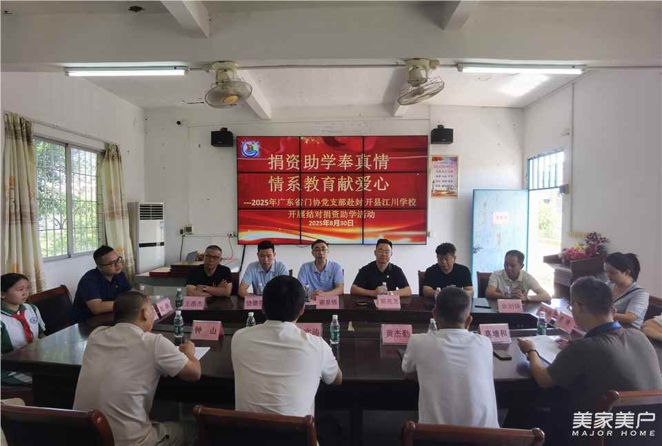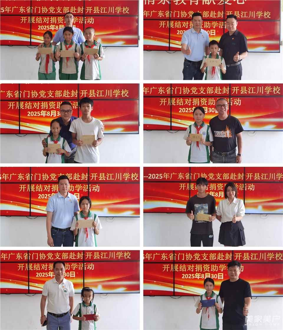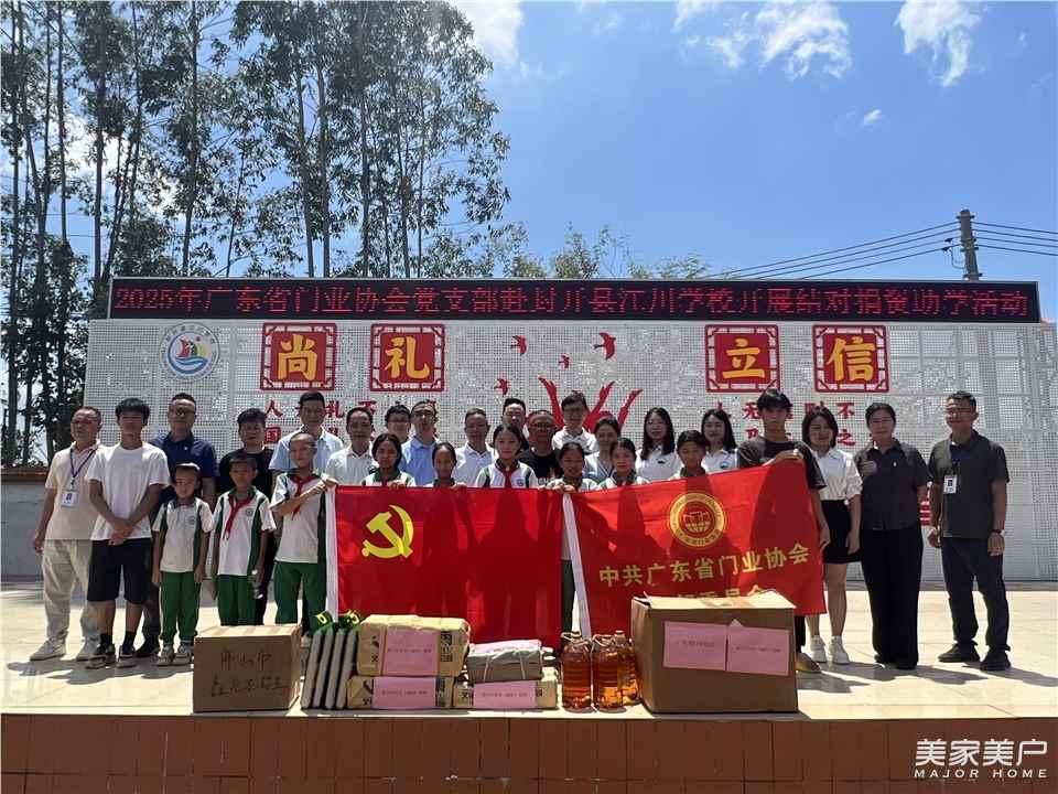 自2022年首次走進廣東省肇慶市封開縣江川學校以來,廣東省門業協會始終將“教育幫扶”作為踐行社會責任的重要抓手。2025年8月30日,協會黨支部聯動多家愛心會員企業代表第四次奔赴江川學校,開展“結對捐資助學”活動,向11名困難家庭孩子發放助學金3.8萬元,向學校捐贈近400冊課外讀物以及實用的體育用品,以務實行動,助力鄉村教育發展。