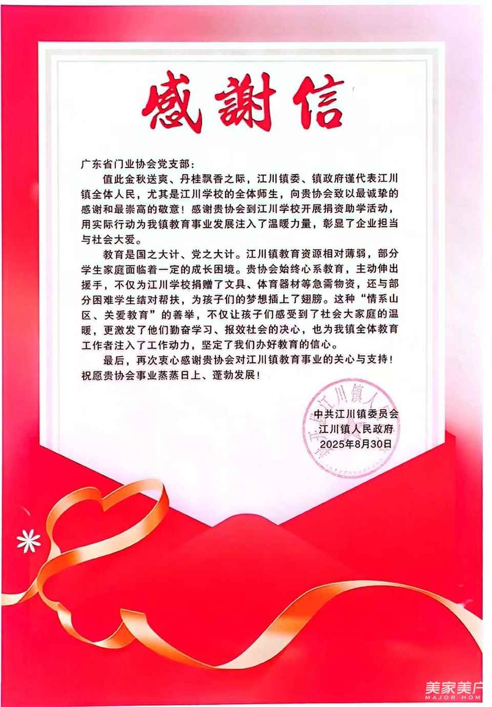 三年來,廣東省門業協會及會員企業用持續的行動詮釋了社會責任的內涵,展現了門窗行業及企業的溫度與擔當。從資金援助到物資支持,從校園改善到家庭走訪,他們的愛心助學行動正在為封開縣的孩子們筑起一條堅實的成長之路。