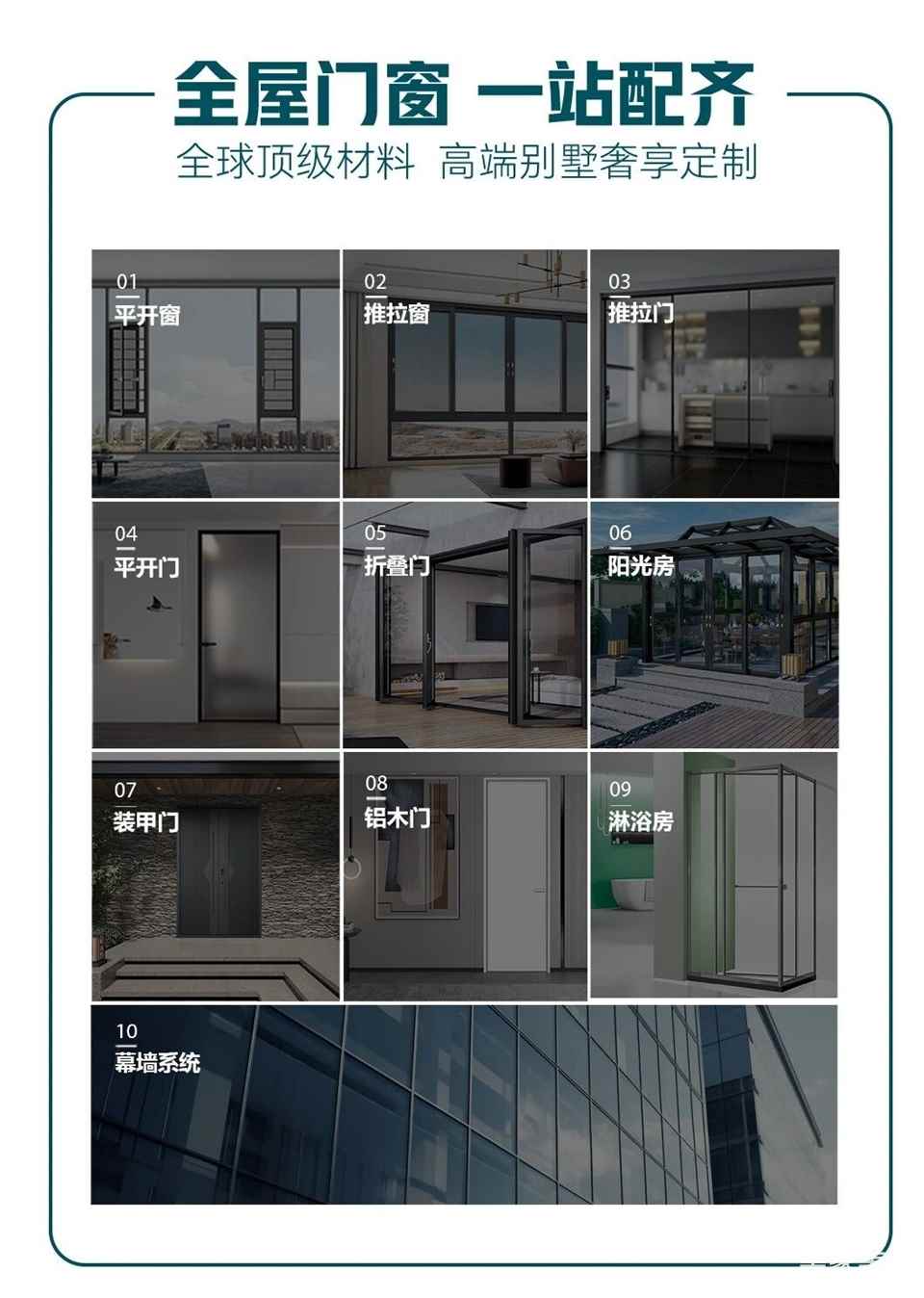 同時(shí)正金門(mén)窗基于對(duì)市場(chǎng)需求的持續(xù)精研,全面升級(jí)產(chǎn)品的隔音、隔熱、水密性、氣密性和抗風(fēng)壓等性能,以從容姿態(tài)應(yīng)對(duì)5大氣候帶的嚴(yán)苛挑戰(zhàn),贏得不同地域、氣候條件下消費(fèi)者的廣泛青睞。為加強(qiáng)空間設(shè)計(jì)整體性,正金門(mén)窗產(chǎn)品線涵蓋覆蓋平開(kāi)窗、平開(kāi)門(mén)、推拉窗、推拉門(mén)、折疊門(mén)、陽(yáng)光房、鋁木門(mén)、淋浴房、幕墻系列及全鋁系統(tǒng)裝甲門(mén)等全品類(lèi)產(chǎn)品矩陣,提供個(gè)性化配置方案,滿(mǎn)足全屋門(mén)窗一站式高端安全門(mén)窗定制需求。