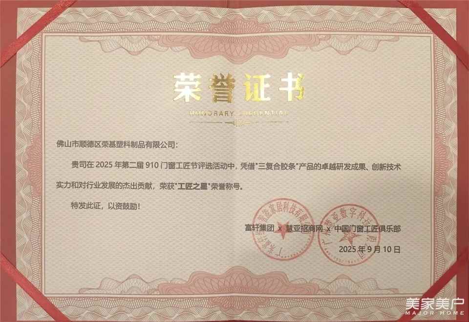 富軒 910 門窗工匠節,榮基三復合膠條斬獲“工匠之星”