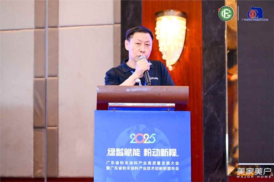 廣東省粉末涂料產業技術創新聯盟理事長彭浩民先生在致辭中強調,當前,粉末涂料行業正處于轉型升級的關鍵期。一方面,我國粉末涂料市場格局深度調整,2024年全國粉末涂料總銷量上漲6.6%,達265萬噸,但廣東省粉末涂料總銷量下降5.6%,建材類粉末涂料總銷量下降10%以上,而且行業仍面臨中低端產能過剩、同質化競爭激烈、中小企業技術短板突出等挑戰,亟需通過技術創新與產業鏈協同破局突圍。另一方面,國家“雙碳”戰略持續深化,新質生產力領域蓬勃發展,新能源、新材料、人工智能、低VOC排放導向下的漆改粉高端應用領域前景廣闊,為、市場打開了高端應用的新空間。面向未來,希望聯盟各成員企業聚焦戰略方向:以技術攻堅突破產業瓶頸,以產業鏈整合重構競爭優勢,以綠色智能制造擁抱行業變革。