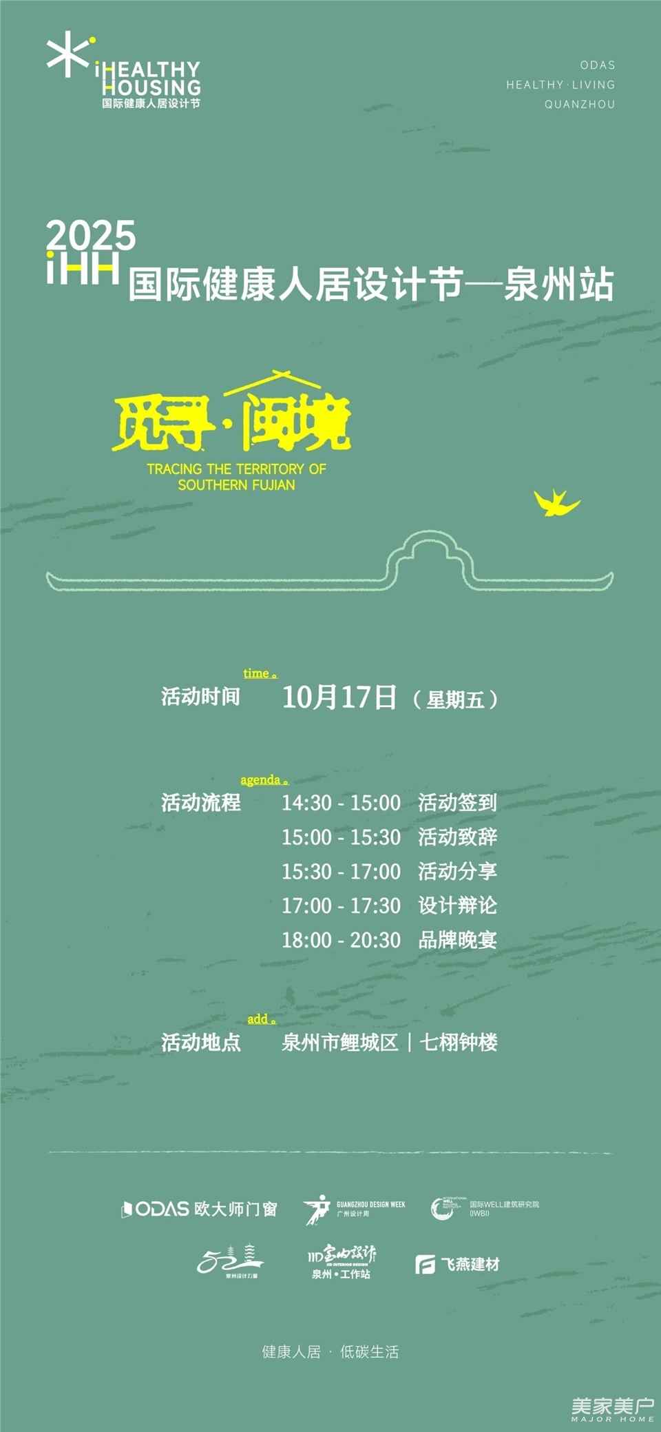 繼山城重慶的“品荷·賞境”之后,iHH國際健康人居設計節的全國征程即將南下,于10月17日在泉州七栩鐘樓盛大開啟第二站。