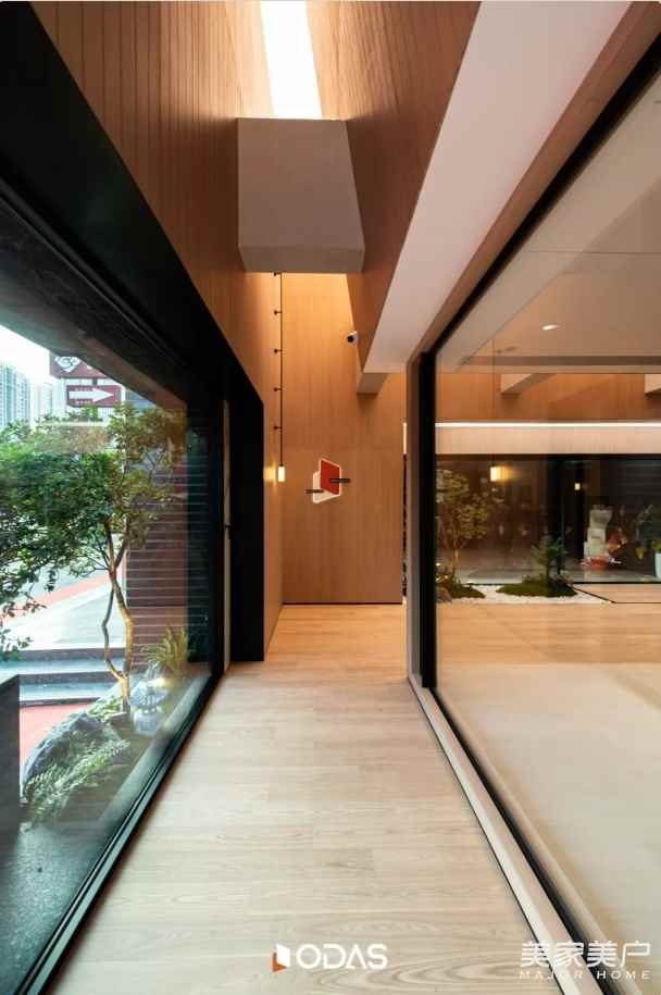 會客區(qū)金屬與天光、辦公區(qū)金屬與功能的融合,是唐忠漢老師對“從自然到精致”敘事的升華。從一層的木石峽谷到二層的金屬閣樓,我們不僅展示門窗應(yīng)用場景,更傳遞“讓自然與現(xiàn)代生活共生”的理念——好門窗,能融入自然,適配現(xiàn)代,是連接生活與美好的橋梁。