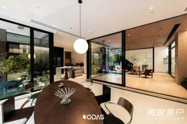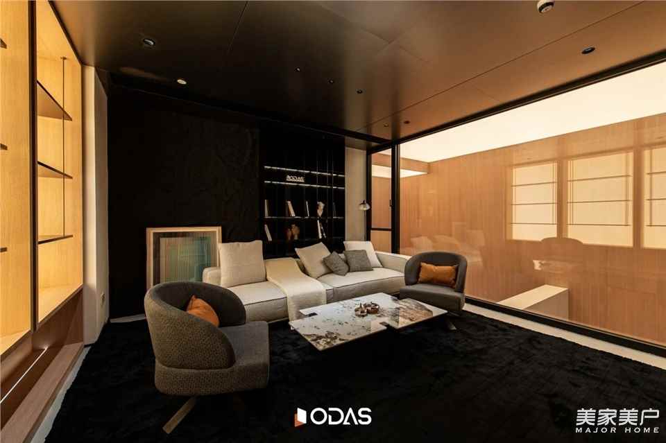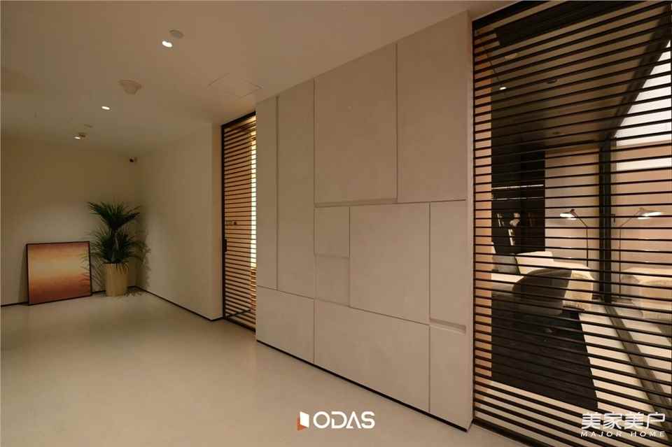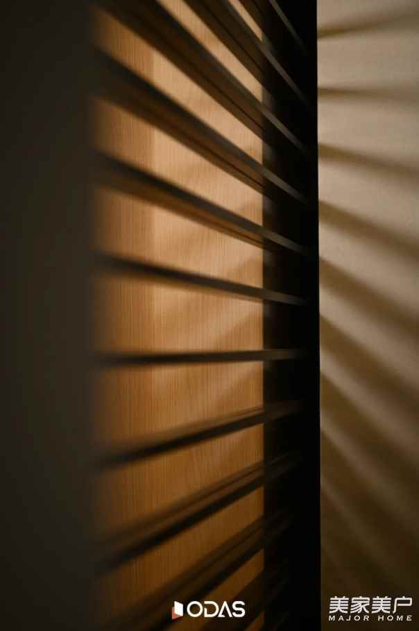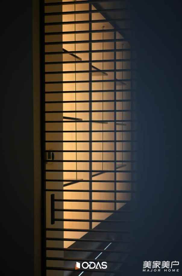 ☆歐大師悅居40極窄吊趟門:格柵黑胡桃色為空間增色,吊趟設(shè)計順滑流暢,無軌道積塵,掃地機器人輕松出入清潔;搭配用格柵開合營造秩序,與建筑幾何構(gòu)成相呼應(yīng),將光線過濾柔化,引光入室。