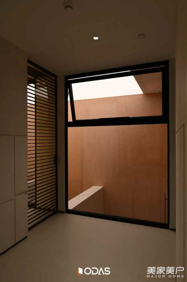 白天,陽光透過玻璃鋪滿通道,光影在原木豎條板上躍動,打開通風窗,新鮮空氣自然涌入,既保有“光為空間主調(diào)”的通透,又滿足通風之需;傍晚,室內(nèi)燈光暈染而出,通風窗與整體設(shè)計渾然一體,不擾峽谷靜謐。