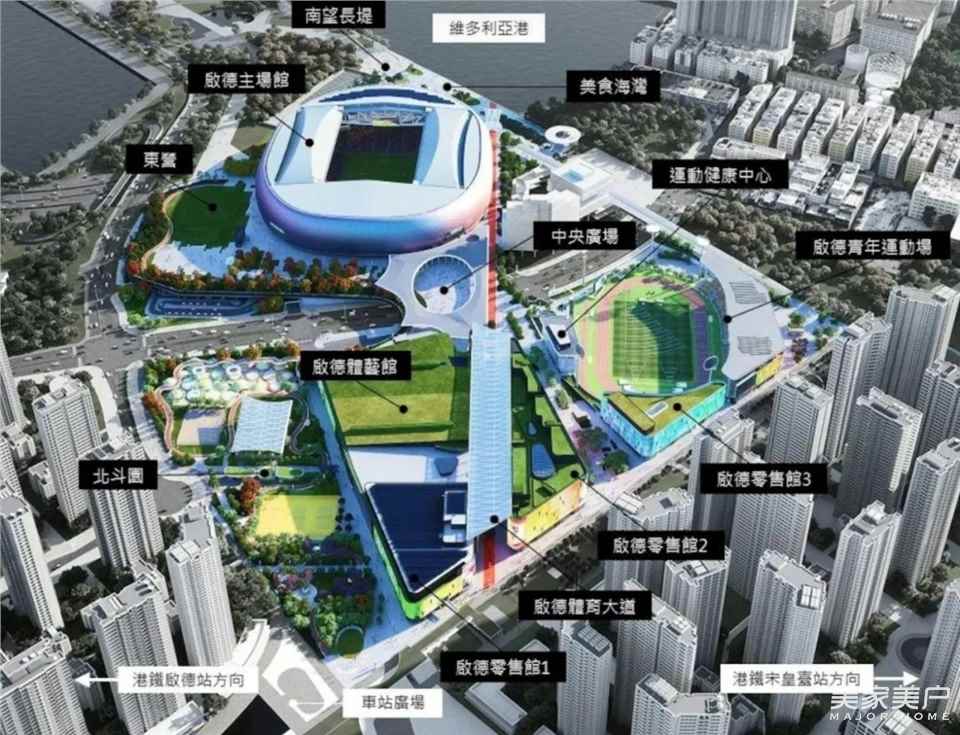 體育園包括可容納約5萬(wàn)名觀眾的主場(chǎng)館、1萬(wàn)個(gè)座席的室內(nèi)體育館,以及設(shè)有5000個(gè)座席的室外公眾運(yùn)動(dòng)場(chǎng)。其中,主場(chǎng)館配置的可伸縮屋頂與維多利亞港景觀幕墻,斬獲BIM國(guó)際大獎(jiǎng),并憑借卓越的環(huán)保性能獲得香港綠色建筑議會(huì)頒發(fā)的綠建環(huán)評(píng)社區(qū)鉑金級(jí)認(rèn)證。