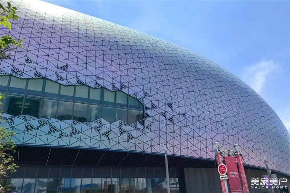主場(chǎng)館幕墻面積高達(dá)3.5萬(wàn)平方米,以獨(dú)特的異形三角形幕墻系統(tǒng)為主體,彰顯出別具一格的美學(xué)效果。
