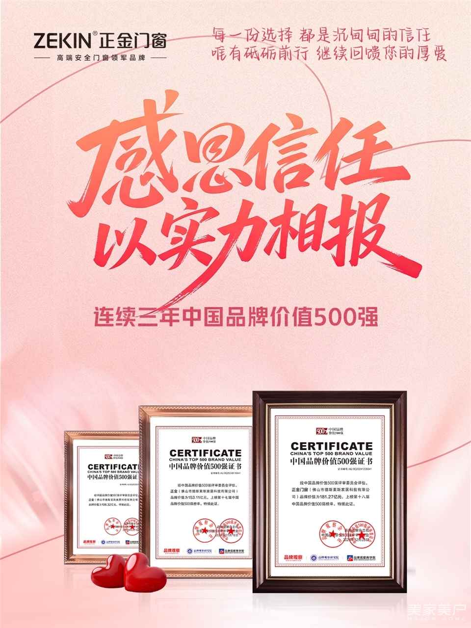 1?? 感恩信任,我們以實力相報?? 連續三年入選「中國品牌價值500強」