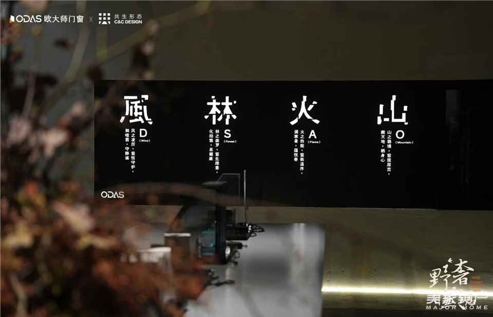 巧妙結合中國兵法智慧與現代設計哲學,以“風之息”“林之?”“火之熄”“山之憩”四大空間,構建可游、可憩、可感的微縮世界。設計理念充分彰顯歐大師門窗對野奢美學的獨到見解,以及在設計領域的深厚積累與創新活力。