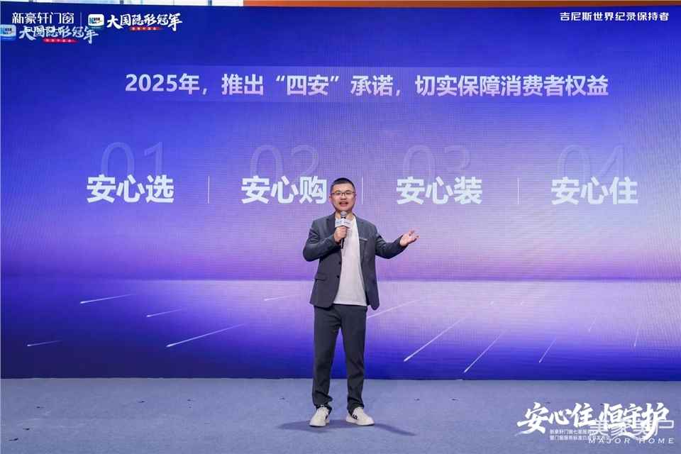 當(dāng)“家”的概念從物理空間向情感歸屬延伸,門窗作為家的“守護(hù)者”被賦予了更深層次的意義。新豪軒集團(tuán)營銷總經(jīng)理晁岳亮帶來的《四安守護(hù)美好家》主題分享,系統(tǒng)闡述了新豪軒門窗“安心選、安心購、安心裝、安心住”的四安服務(wù)承諾。