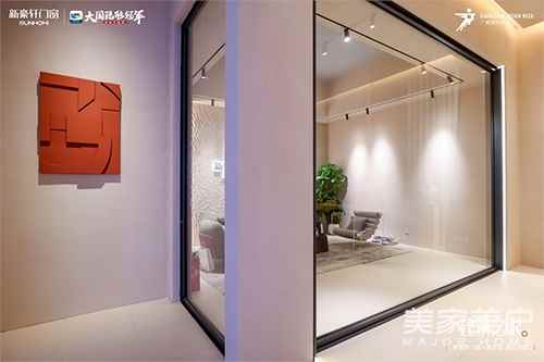 新豪軒本次展館以大地主義風格為核心,大面積低飽和度中性色鋪陳其間,疊加超大玻璃門窗產品與藝術裝置的巧妙融合,在簡約中塑造出深厚的空間質感,還原生活本真的靜謐與舒適。蜿蜒的參觀動線將各系列產品緊密串聯,讓參觀者在行走間沉浸式感受門窗與空間的和諧共生。