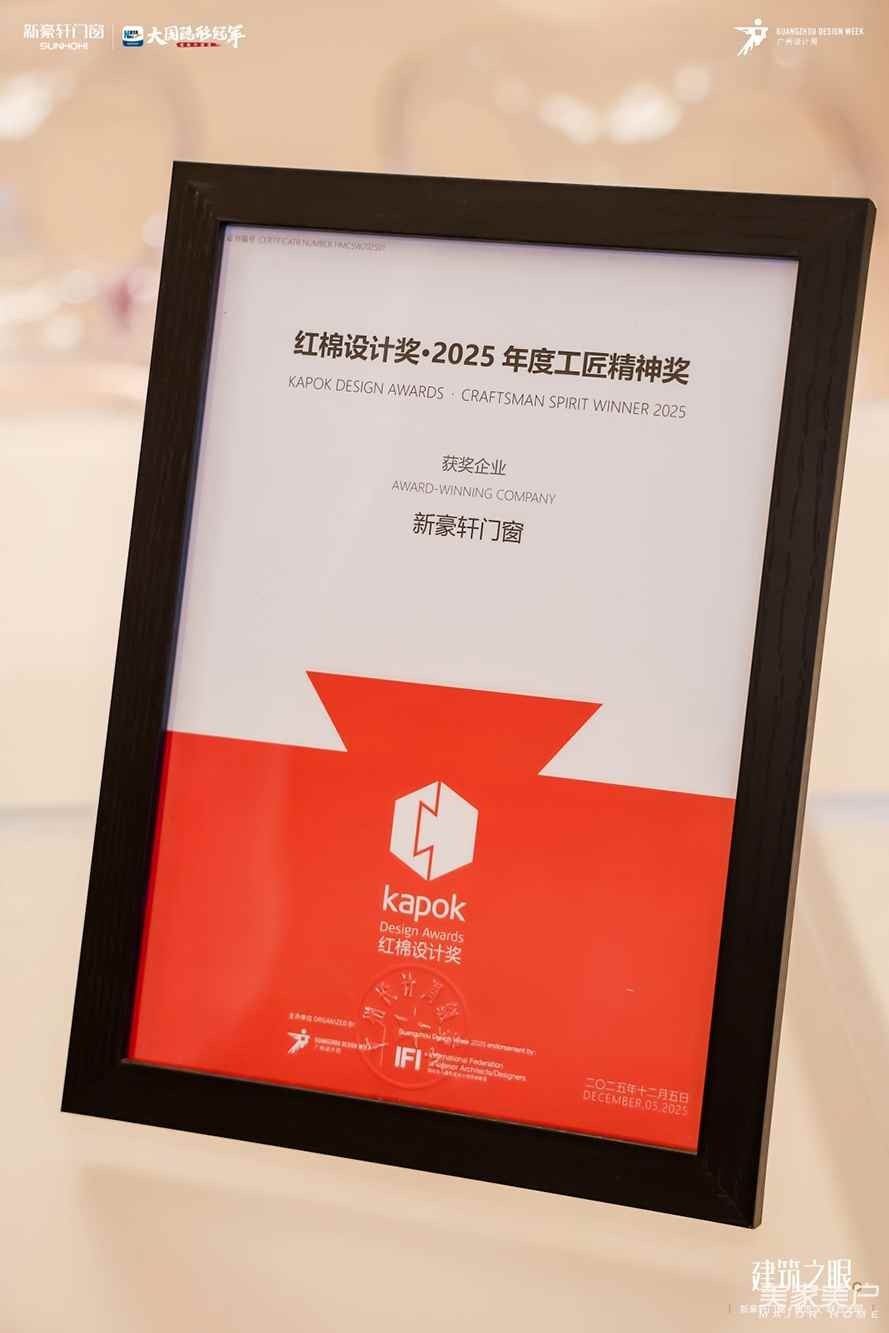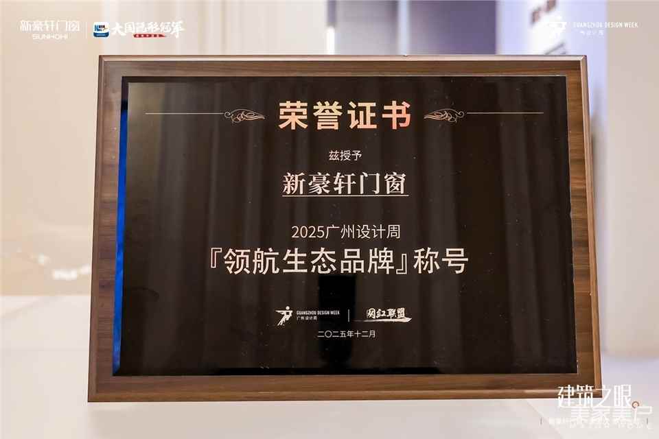 12 月 6 日,新豪軒門窗再添殊榮,獲泛家居網紅聯盟授予 “2025 廣州設計周領航生態(tài)品牌” 榮譽稱號,彰顯品牌在行業(yè)生態(tài)中的引領地位。
