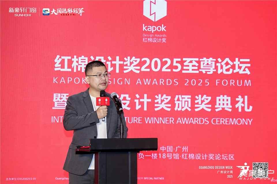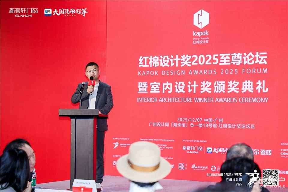 12月7日上午,“紅棉設計獎2025至尊論壇暨室內設計頒獎典禮”活動現場,新豪軒門窗營銷總經理晁岳亮作為品牌代表,以特約合作伙伴身份登臺致辭,分享新豪軒門窗在推動家居設計與服務升級方面的實踐與思考。同時作為頒獎嘉賓,品牌方代表給獲獎設計師代表頒獎,詮釋新豪軒與設計師深度協(xié)同、賦能美好生活的價值追求。同日下午,在“紅棉設計獎2025至尊論壇暨產品設計獎頒獎典禮”上,新豪軒門窗更憑借精益求精的匠心精神與行業(yè)引領作用,榮獲“紅棉設計獎·2025工匠精神獎”,再次收獲行業(yè)高度認可。