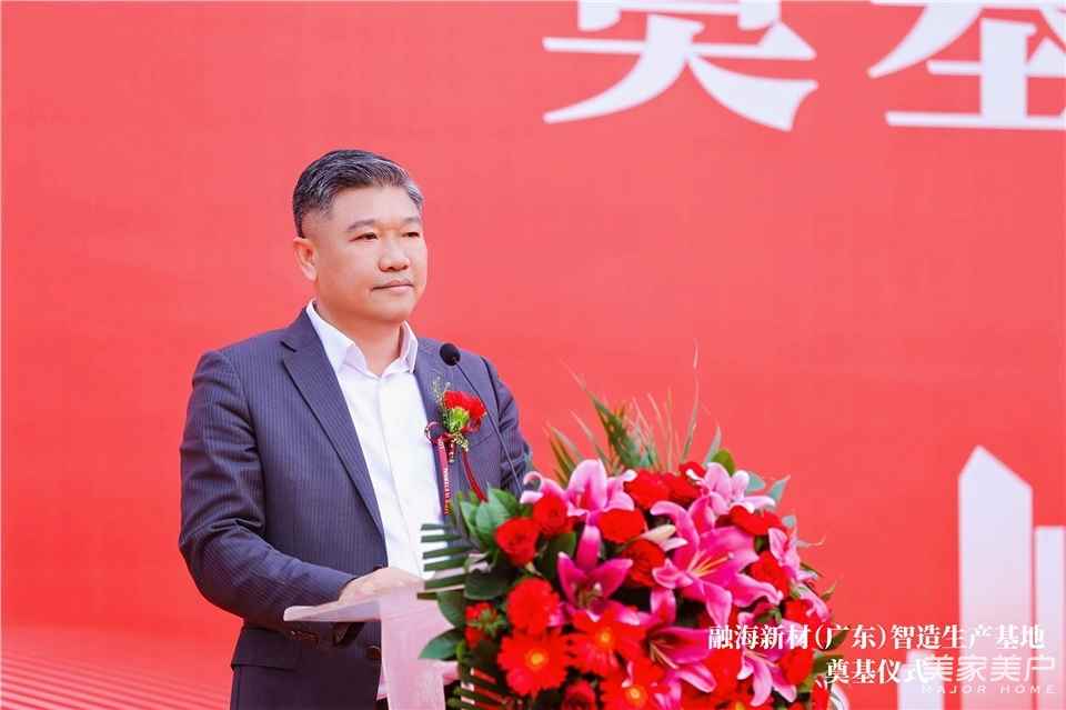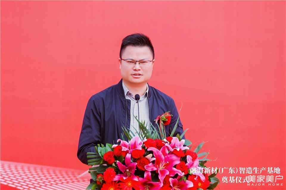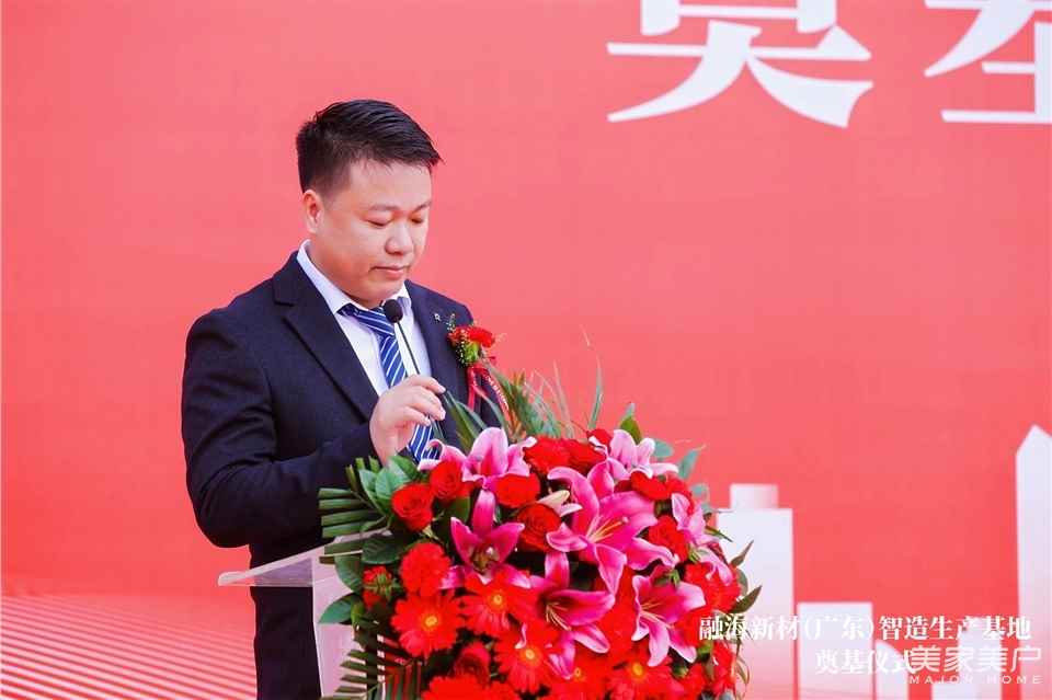 堅美鋁材銷售副總蔣秋榮,代表合作伙伴登臺,送上對融海新基地奠基的誠摯祝福,并明確表達了與融海新材深化合作、攜手共贏的強烈意愿,彰顯了上下游企業協同發展的深厚共識。