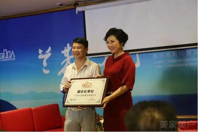 在活動開始之前,蘭芳會長給東合建設(shè)股份有限公司頒發(fā)了廣東省建筑裝飾設(shè)計協(xié)會副會長單位牌匾。