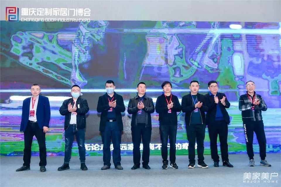 隨后,重慶市木門行業協會秘書長梁天順,開州區重慶智能家居產業園主任張波,重慶定制家居門博會總經理李秀強等八位行業代表共同開啟展會的序幕。
